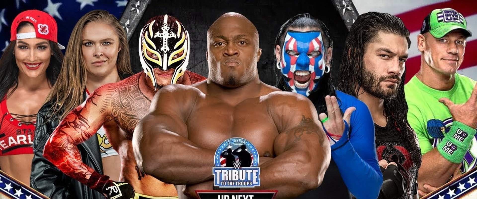 WWE Tribute to the Troops ist eine von World Wrestling Entertainment und Armed Forces Entertainment jährlich in der Weihnachtszeit abgehaltene Wrestling-Show für Mitglieder der Streitkräfte der Vereinigten Staaten. Die Wrestler und Mitarbeiter der WWE besuchen die Truppen vor Ort und verbringen etwa drei Tage auf dem jeweiligen Stützpunkt. Im Mittelpunkt steht eine Wrestling-Show, die für die Truppen veranstaltet werden. The New Day, Carmella and R-Truth brought the Power of Positivity to the holiday season Ronda Rousey & Natalya def. Nia Jax & Tamina and Liv Morgan & Sarah Logan Morgan Wallen performed for the men and women of Fort Hood Elias & Finn Bálor def. Bobby Lashley & Drew McIntyre “Miz TV” welcomed special guests Becky Lynch and Charlotte Flair Becky Lynch & Charlotte Flair def. Mandy Rose & Sonya Deville Special guest Jon Stewart brings humor and appreciation to Tribute to the Troops AJ Styles & Seth Rollins def. the “New” Daniel Bryan & Dean Ambrose